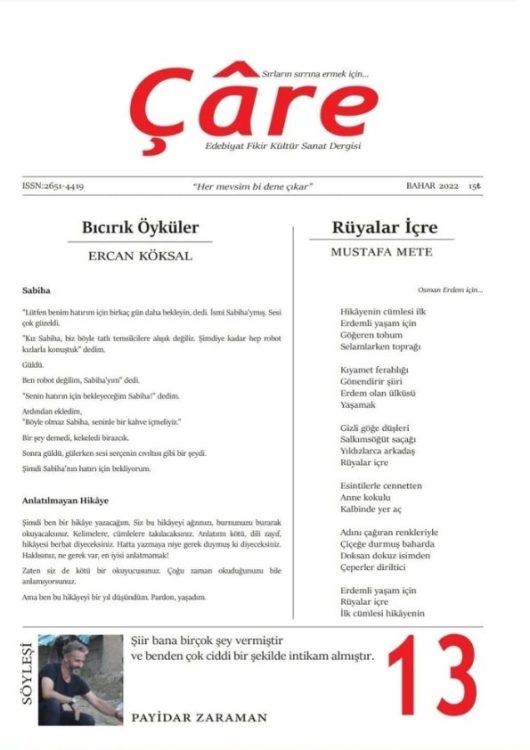 Çâre’nin okurda kabul gördüğünün bir diğer işareti de dergimize gönderilen eserlerdir. Gelen her esere bu sayımızda yer vermemiz pek tabiî mümkün değil, yayın kurulumuzun titiz çalışmasıyla […]